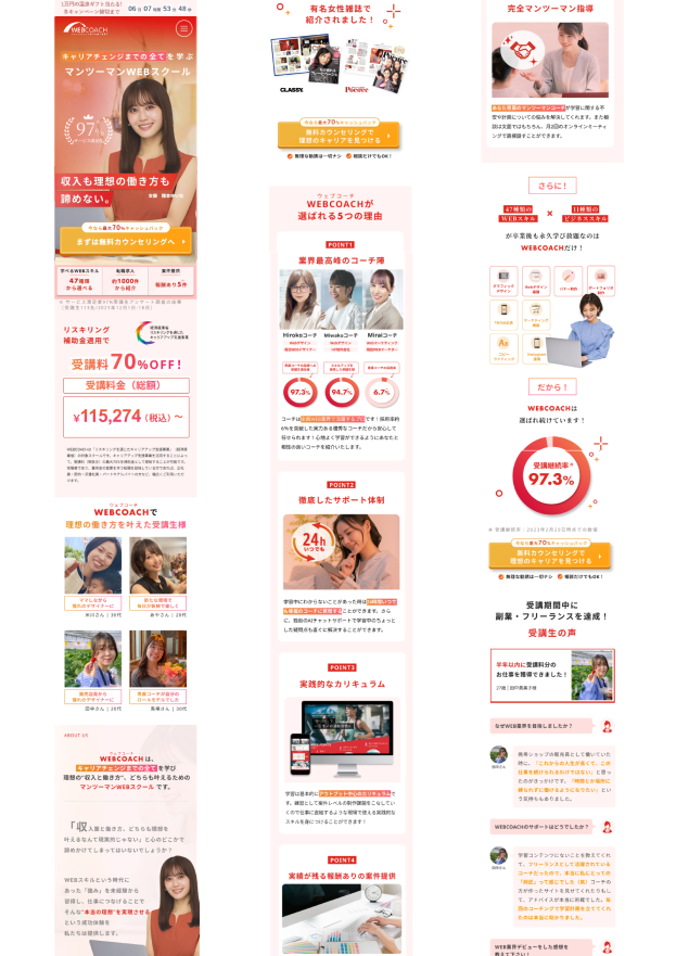 【意識した亊】スクロール離脱を防ぐためjqueryで動きをつけたLPを作成しました。